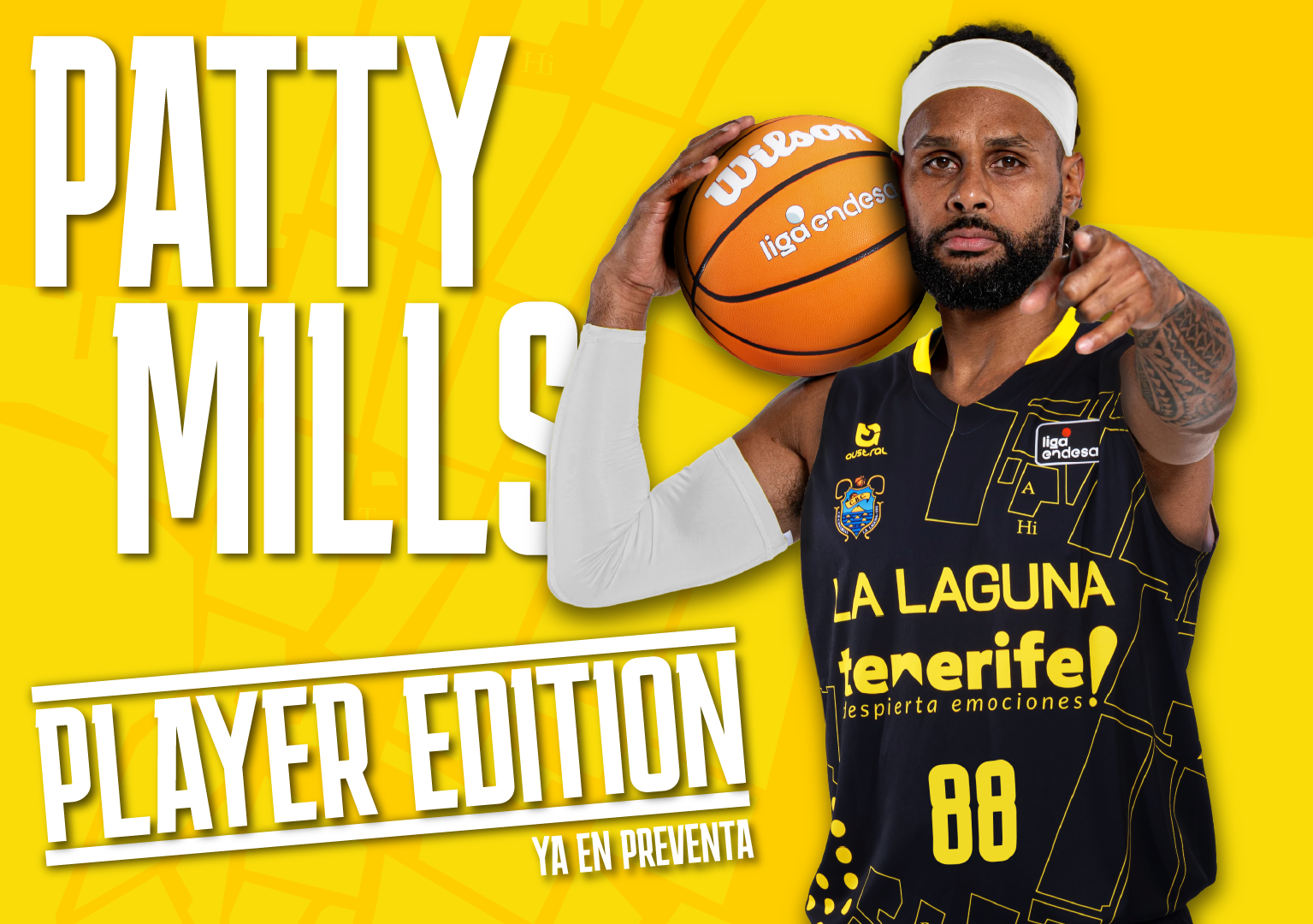 El club lagunero ha activado la preventa exclusiva de la ‘Player Edition’, la misma réplica que vestirá Mills en los partidos oficiales de la Liga Endesa. Una oportunidad única para lucir los colores amarillo y negro con el nombre de una de las grandes figuras del baloncesto internacional FIBA y NBA.