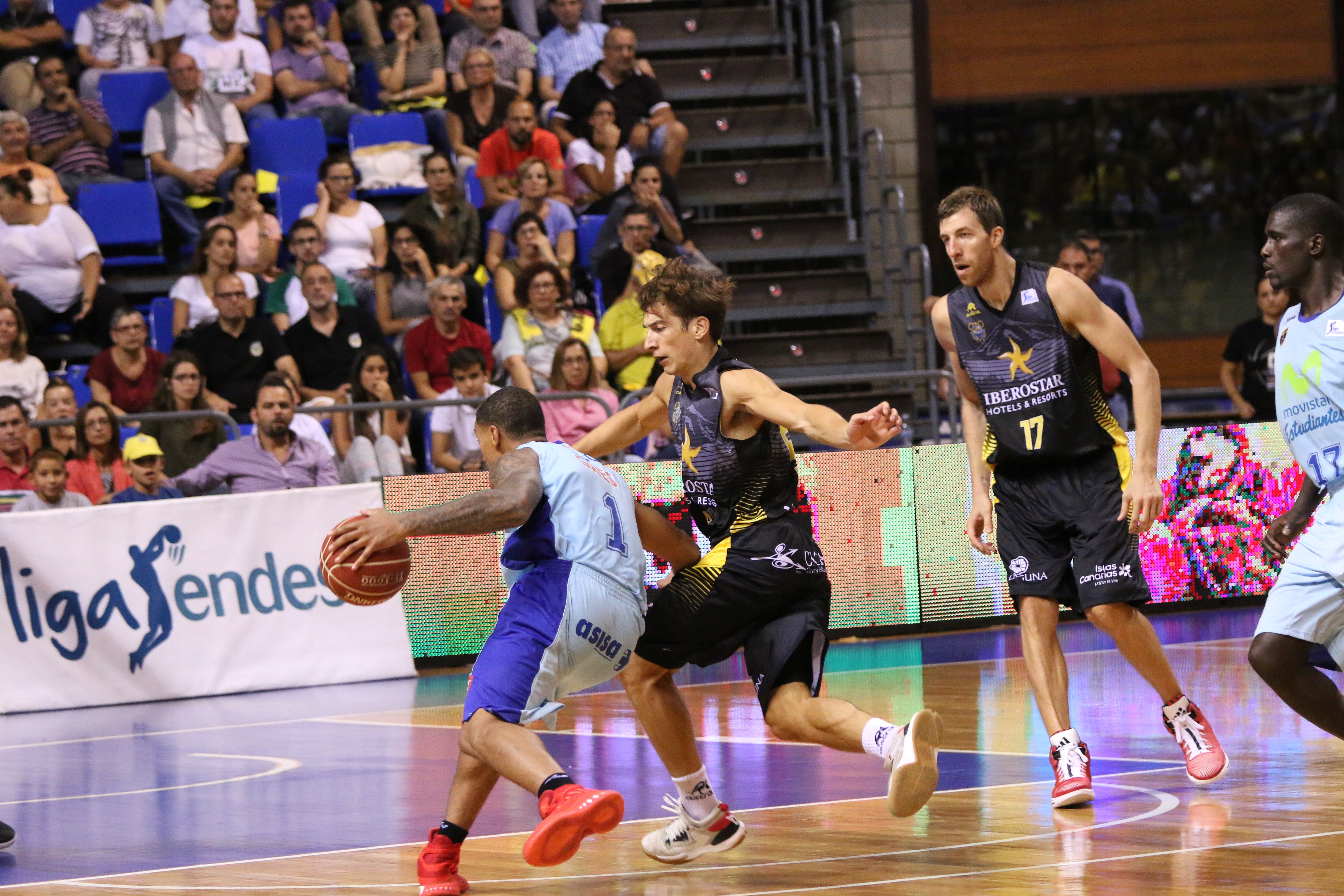 En el Movistar Estudiantes Edwin Jackson estaba manteniendo a su equipo en el marcador. Superaba a sus defensores y mantuvo a los colegiales en el partido ante la pasiva defensa local. Al descanso se llegó cuatro puntos arriba para el Iberostar Tenerife Canarias (47-43) y aún todo por decidir.