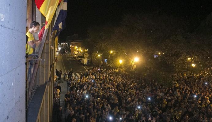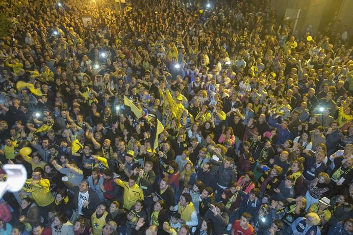Era el primer acto de celebración pública de la victoria canarista, ya como campeón de la competición europea, así que la plantilla y los técnicos compartieron con miles de aficionados un emotivo acto, espontáneo, desde el balcón del Ayuntamiento.