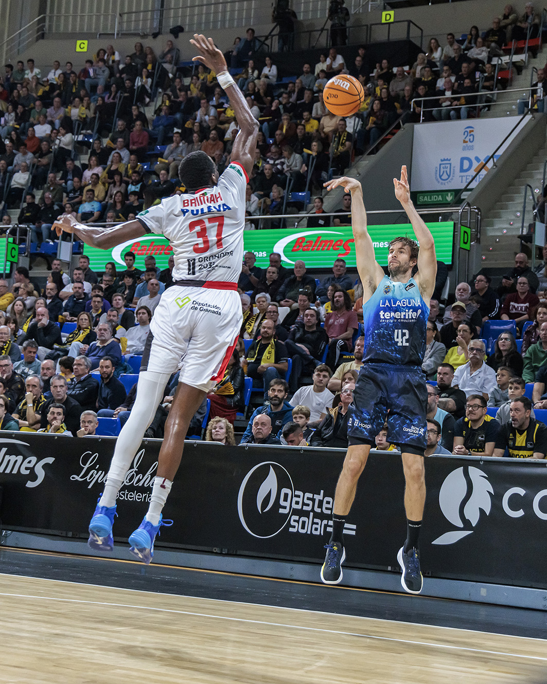 Porque el partido, lejos de ser un paseo, se convirtió en una prueba de resistencia. El Granada incomodó desde el inicio, contestando el buen arranque aurinegro con un demoledor acierto exterior. Howard, inspirado, firmó tres triples consecutivos que cambiaron el rumbo del choque y dieron confianza a un conjunto nazarí que supo explotar las dudas locales (10-13). El Canarias, espeso desde el perímetro y con lagunas defensivas, permitió que el rival creciera hasta alcanzar una renta de ocho puntos ya en el segundo cuarto (16-26). Tocaba remar y hacerlo sin perder la calma. Doornekamp y Huertas marcaron el camino desde más allá del arco, iniciando una fase de equilibrio que se prolongó hasta el descanso, al que se llegó con empate tras un triple oportuno de Tim Abromaitis (38-38).