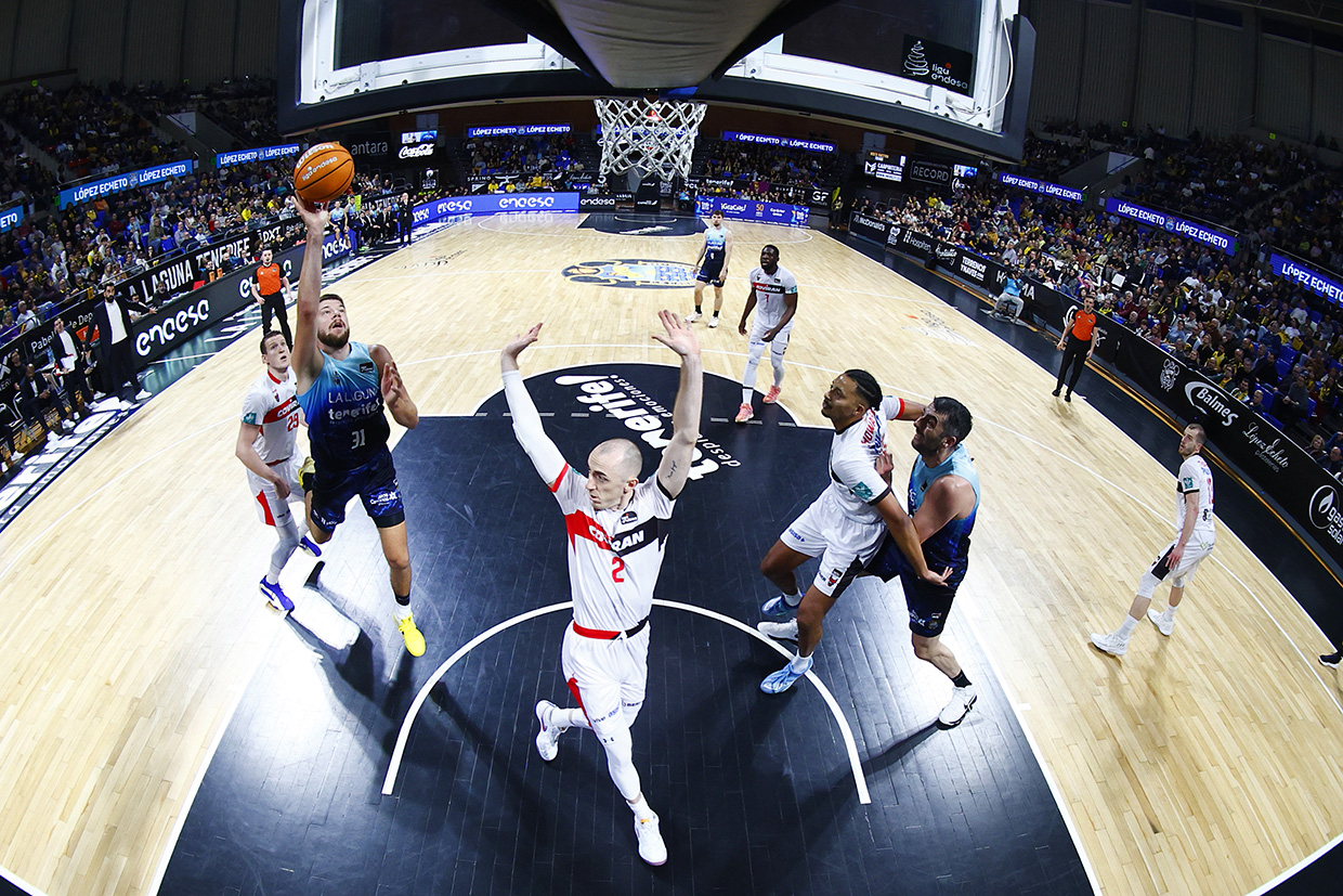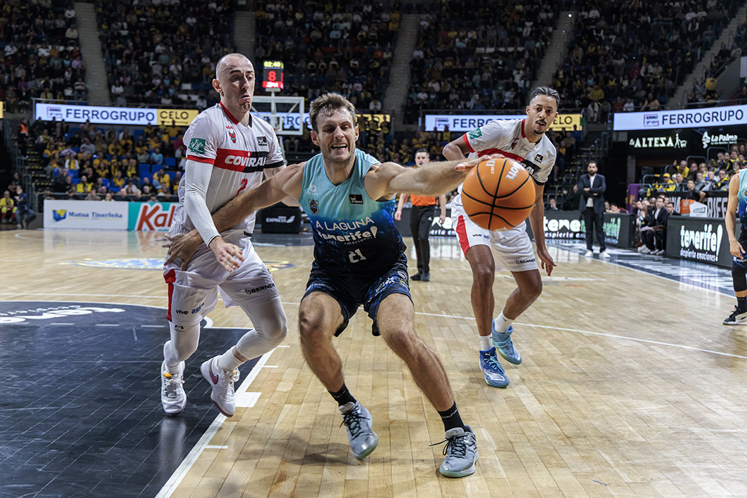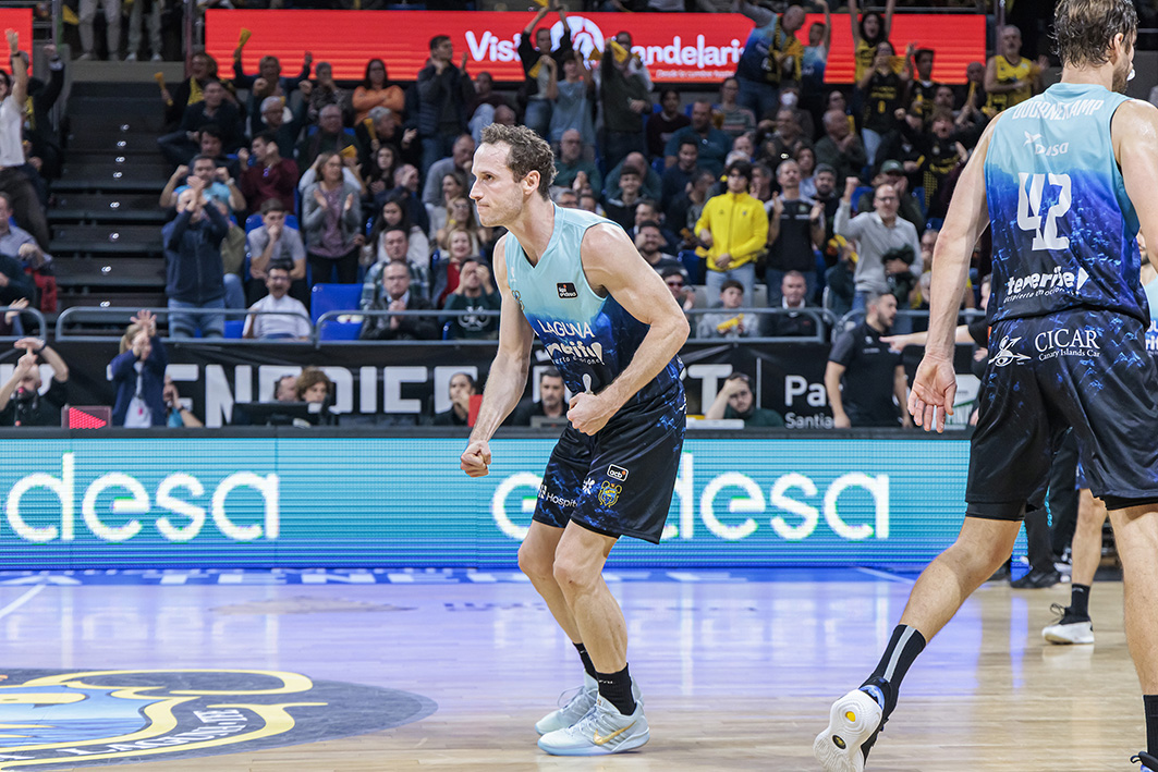 Fue una acción que resumió toda una carrera. Huertas, más mágico que pistolero, cruzó la pista, leyó el bloqueo y, cuando nadie lo esperaba, se elevó para lanzar un triple que heló a los visitantes y encendió a la grada del Santiago Martín. Sangre fría, jerarquía y una decisión tomada sin mirar atrás.