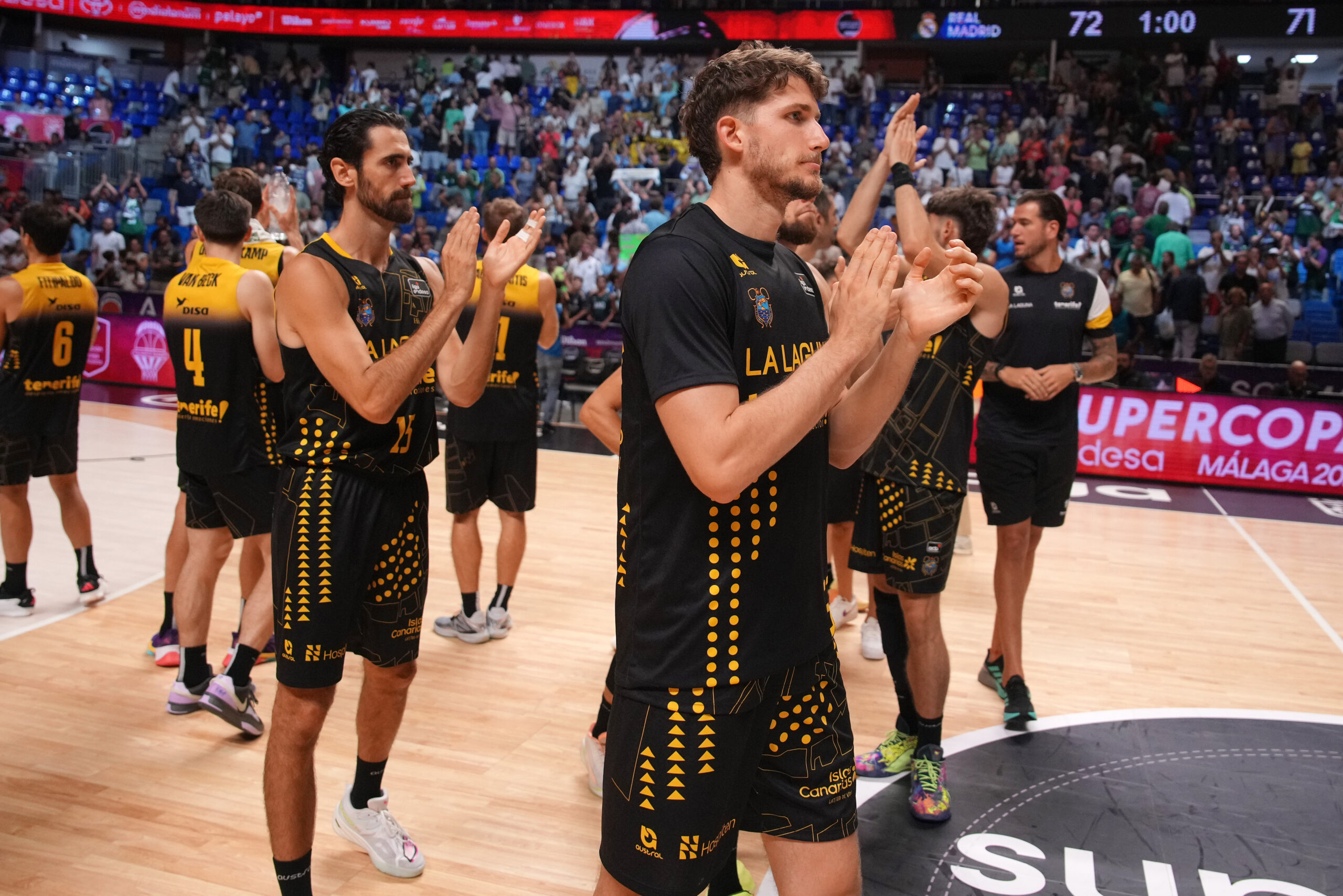 - La Laguna Tenerife perdió por la mínima ante el Real Madrid (72-71) en una semifinal de la Supercopa Endesa marcada por decisiones arbitrales muy discutidas. A pesar de dominar buena parte del partido gracias a Marcelinho Huertas y Gio Shermadini, los canaristas vieron cómo faltas técnicas y antideportivas clave favorecían a los blancos en los instantes decisivos.