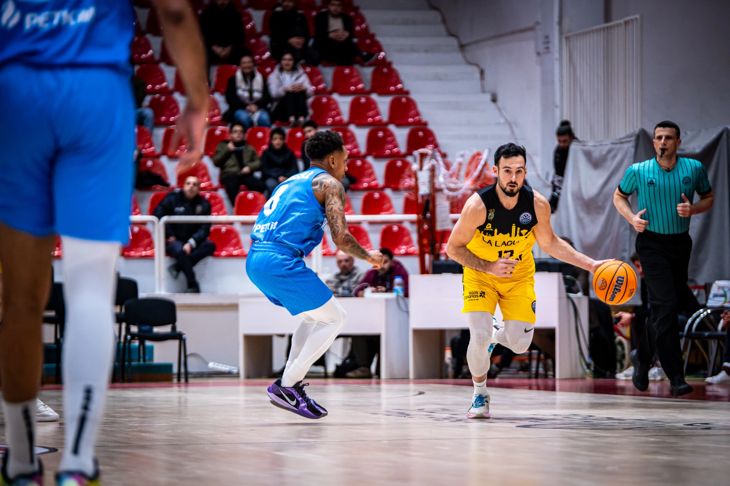 El balón surcó el aire y el rugido inicial de los turcos fue apenas un espejismo. Un parcial de 1-10 impuso el rigor tinerfeño, congelando la euforia local en apenas cuatro minutos. Pero la puntería parecía escurrirse entre los dedos de ambos equipos, en una danza un tanto torpe donde la precisión brillaba por su ausencia. El primer cuarto se cerró con esa extraña certeza de dominio discreto pero con los aurinegros por encima en el electrónico (17-25).