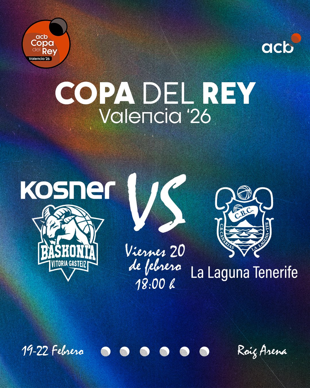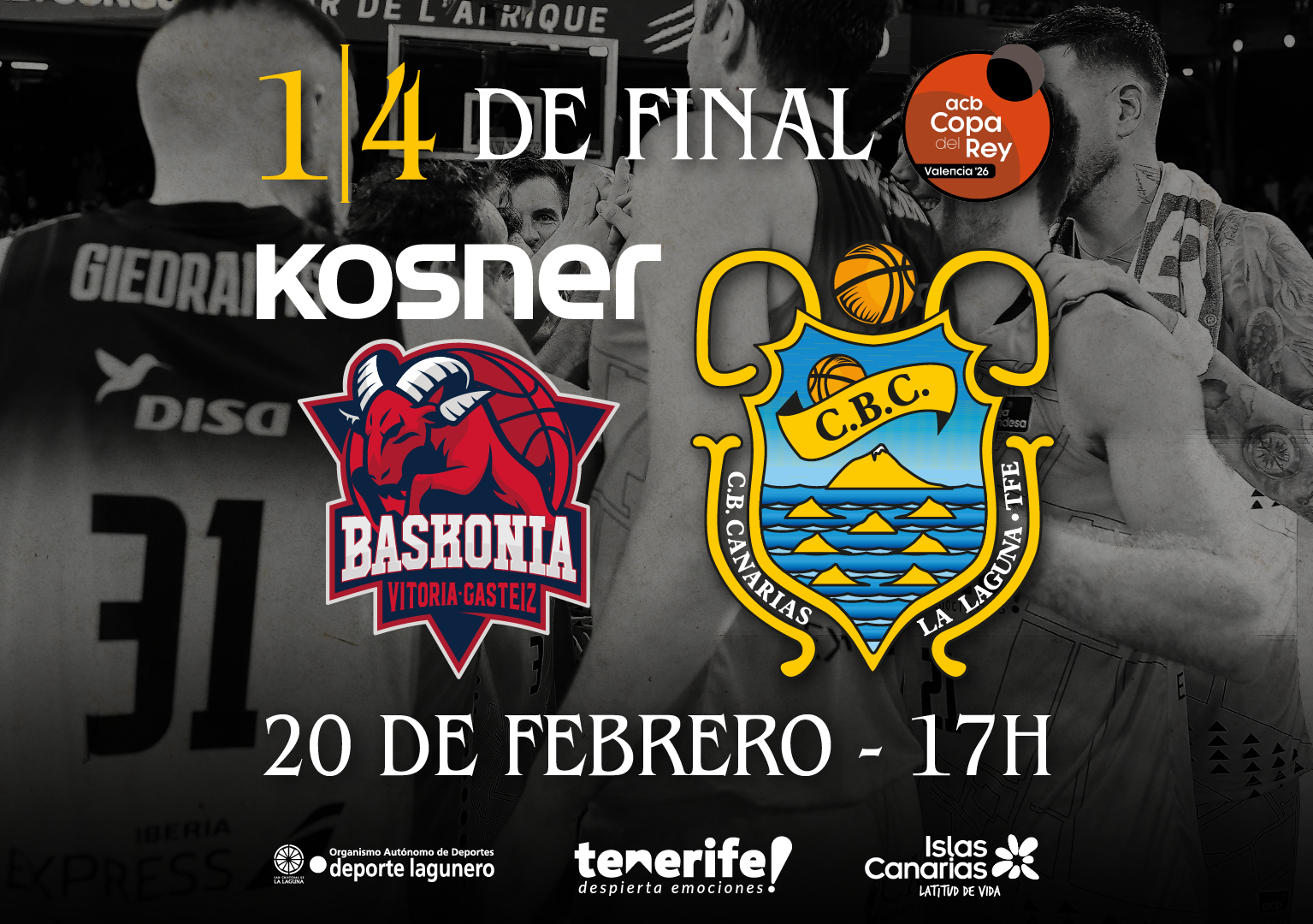 Se acabó la incógnita. Tras el partido pendiente de la primera vuelta disputado ayer domingo entre Dreamland Gran Canaria y Kosner Baskonia, con victoria visitante por 75-97, quedó definido el cuadro de cuartos de final de la Copa del Rey Valencia 2026. El conjunto vasco, que certificó su condición de cabeza de serie, será el primer escollo para La Laguna Tenerife en el torneo que se celebrará en el Roig Arena el próximo viernes 20 de febrero, a partir de las 17:00 hora canaria.