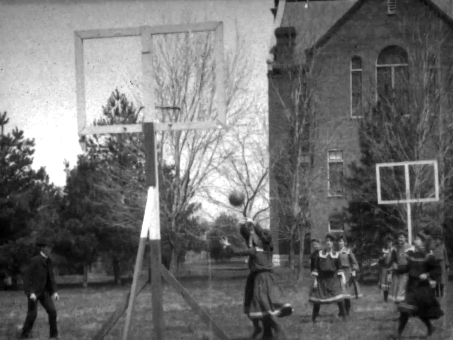 La grabación fue realizada en el Missouri Valley College, una institución educativa en Estados Unidos, y muestra un partido al aire libre jugado por mujeres. Filmado por A.E. Weed, el cortometraje fija su atención en una de las canastas y una sección de la cancha, donde se observa el dinamismo del juego con trajes a modo de uniformes largos, canastas fijas con tableros de madera y una mecánica de tiro muy distinta a la actual.