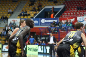 Grigonis, Niang y Hanley en el primer partido del Canarias en la BCL/Foto: SuperBasket Canarias.