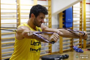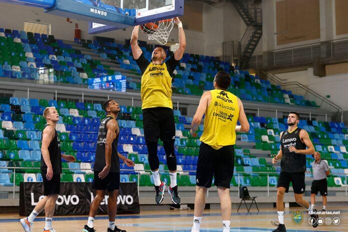 El equipo, entrenado una temporada más por el vasco Txus Vidorreta, completó una doble sesión matinal (gimnasio y balón) en el Pabellón Quico Cabrera de Santa Cruz de Tenerife, instalaciones que serán su cuartel general, a puerta cerrada durante el presente mes de agosto, dao que el Pabellón de Deportes de Tenerife Santiago Martín está siendo utilizando como centro de vacunación contra la pandemia del Covid-19.