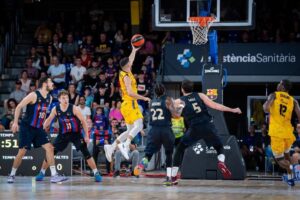Con Laprovittola y Jokubaitis al volante (12 puntos y 3 asistencias entre ambos en el cuarto), el cuadro catalán ganó fluidez en su juego y buscó el aro con más convicción, colocando el 23-20 en el minuto 15, pero otros dos triples de Salin eclipsaron la escapada barcelonista al llegar al tiempo de descanso (27-25) evidenciado los problemas de los aurinegros de cara al aro, que sólo anotó 4 de 16 desde el perímetro, todos ellos firmados por el baloncestista finés.