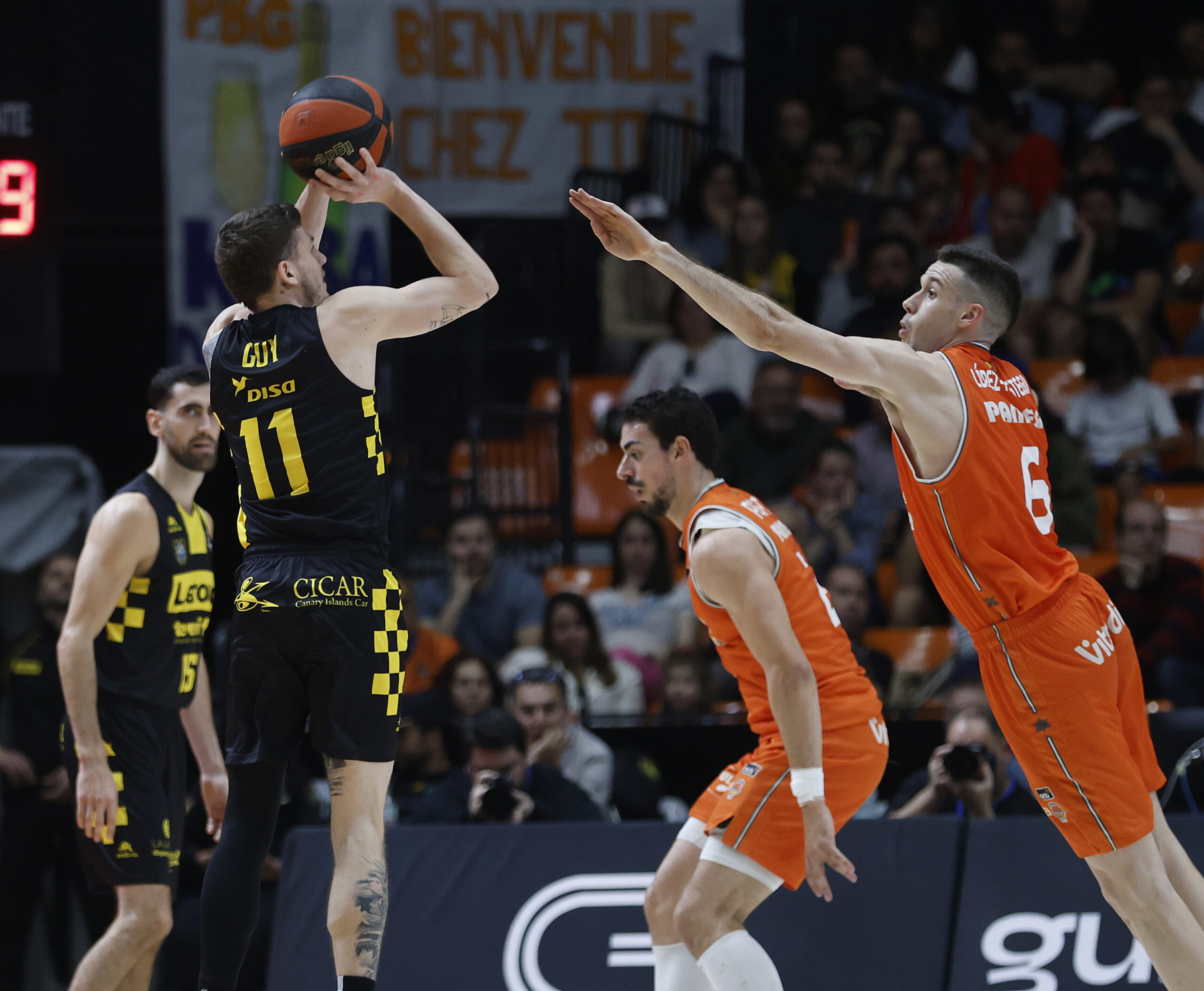 Al mantener la intensidad y la concentración en defensa, con un López-Arostegui muy activo en todo el choque, el Valencia pudo correr y anotar fácil. Esa confianza ensanchó el aro de los isleños. La lluvia de triples y una canasta de De Larra desataron la fiesta en la Fonteta y ya no se apagó hasta el final mientras los canaristas pensaban en Belgrado.