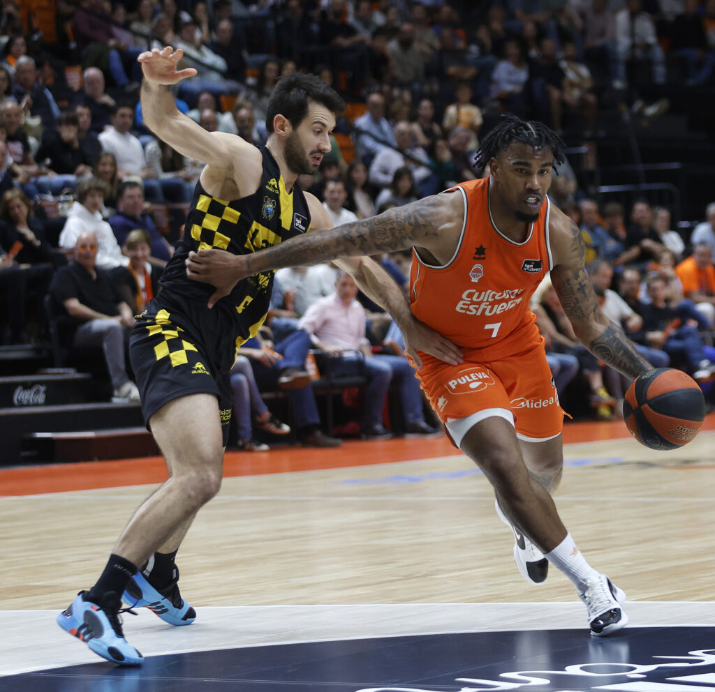 98.- Valencia Basket (19+24+25+30): Jones (8), Anderson (2), Ojeleye (17), Pradilla (15), Davies (9) -cinco titular- De Larrea (2), Harper (11), López-Arostegui (9), Puerto (3), Claver (5), Inglis (13) y Kaba (4).