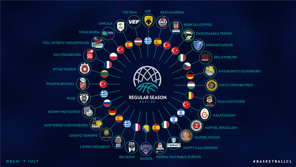 Finalmente, la FIBA descartó la presencia de un quinto equipo de la Liga Endesa, por lo que el Casademont Zaragoza y el UCAM Murcia, que no se habían clasificado deportivamente pero que optaban a jugar el torneo a través de una invitación se han quedado fuera para la teemporada 2021-22. El sorteo de los grupos se celebrará el próximo día 7 de julio en Ginebra.