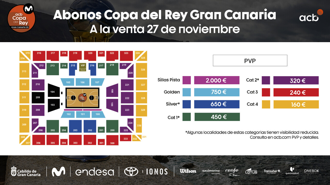 El próximo miércoles 27 de noviembre, a partir de las 11:00 hora canaria, se pondrán a la venta los abonos para la Copa del Rey Gran Canaria 2025 con precios desde 160 euros.
