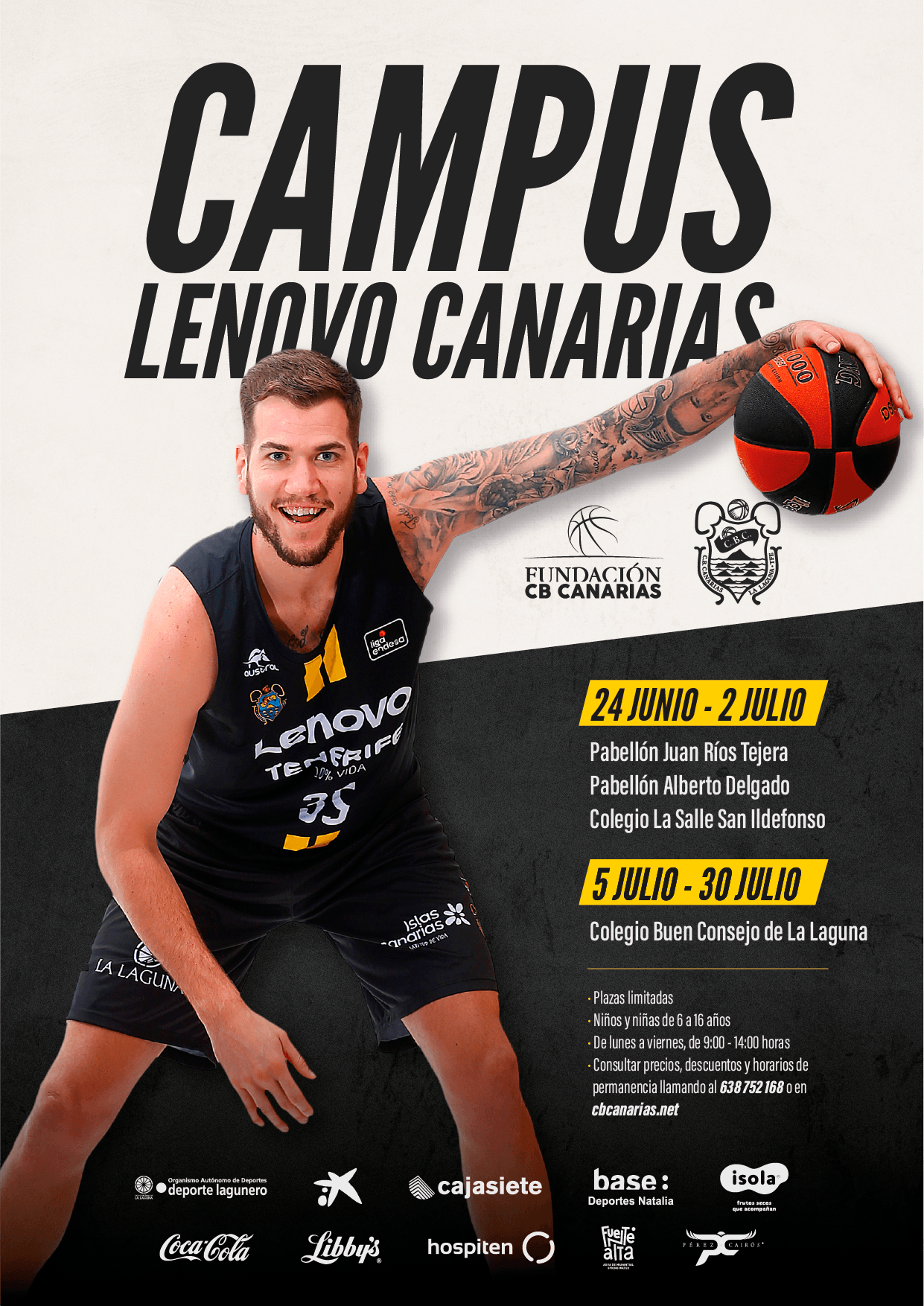 El programa estival de este curso ofrece varias opciones, con distintas fechas y sedes y podrán participar niñ@s de 6 a 16 años. Las inscripciones han de formalizarse en la microweb creada para la ocasión por el club (https://campus.cbcanarias.net/). Cualquier duda al respecto puede consultarse en el teléfono 922-253684 (operativo de lunes a viernes, de 10 a 14 horas), vía whatsapp (638 752168) o vía email: campus@cbcanarias.es.