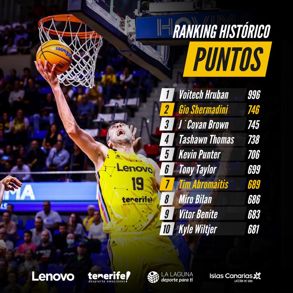 Shermadini supera a J’ Covan Brown, en las filas del Hapoel Tel Aviv, y se acerca al número uno provisional, Voitech Hubran. El jugador canarista es uno de los pilares sólidos de este Lenovo Tenerife dispuesto a batir récords en la competición estatal así como en la internacionl. En esta última, léase Basketball Champions League, y después de su actuación frente al Bnei Herzliya en la que sumó 18 putos, el interior del Canarias se instala en la segunda posición histórica de anotación en la Liga de Campeones de Baloncesto, con un total de 746 puntos.