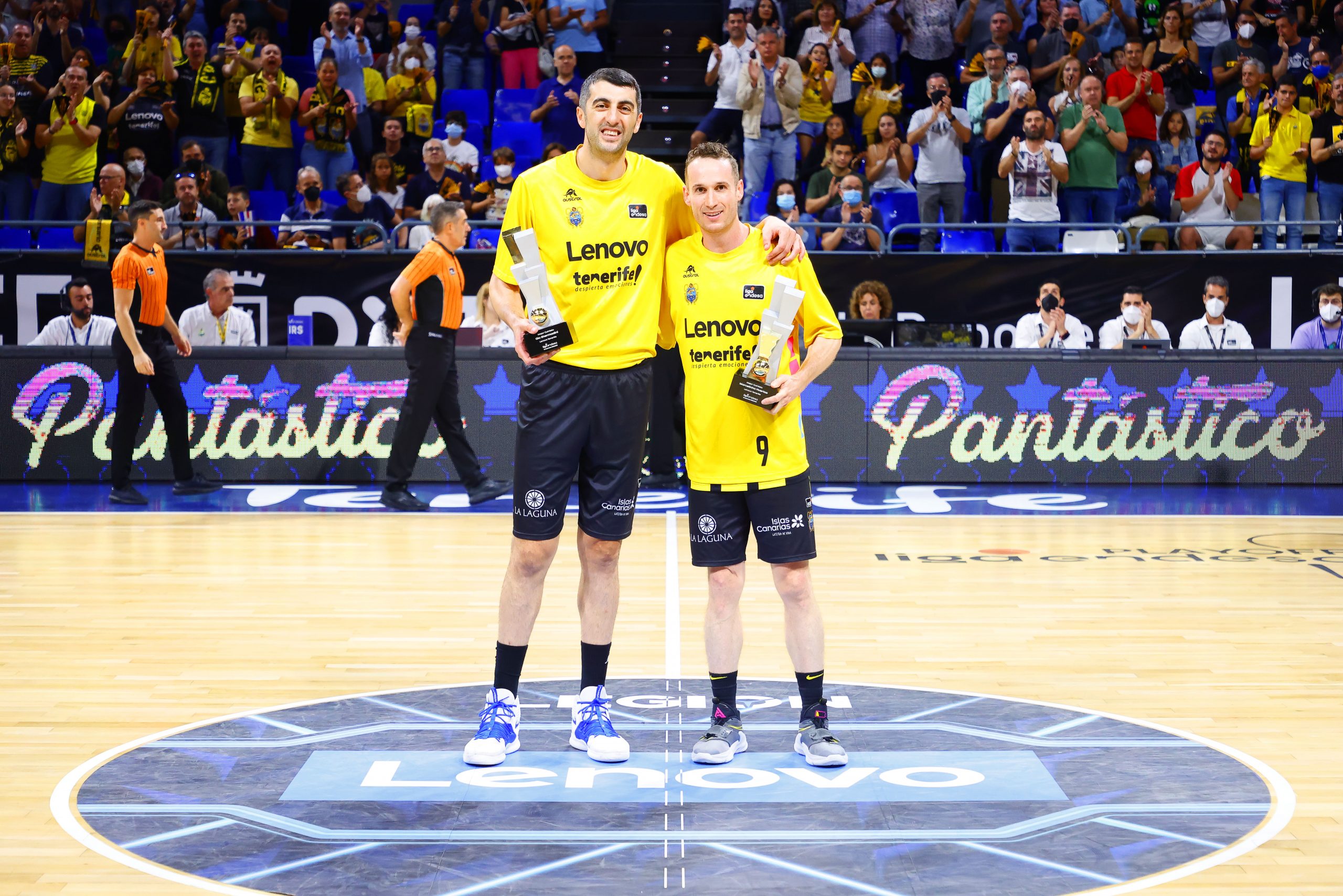 Solo el Lenovo Tenerife, de todos los equipos de la Liga, puede presumir de tener a dos integrantes de su plantilla en el mejor quinteto de la Liga Endesa. Marce y Gio, Gio y Marce, recibieron de manos del presidente del Club Baloncesto Canarias, Félix Hernández, y en los prolegómenos del encuentro que le enfrentaba al Joventut de Badalona saldado con victoria canarista por 103-76, los trofeos que les catalogaban como mejor pívot y mejor base de la competición doméstica.