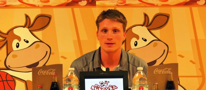 El joven jugador lituano del Iberostar Tenerife Canarias, Marius Grigonis, ha comparecido en la sala de prensa del pabellón de Tenerife Santiago Martín. El alero olímpico aurinegro, tras su excelente debut liguero, no dudó en afirmar que «le gustaría acabar con tres victorias».
