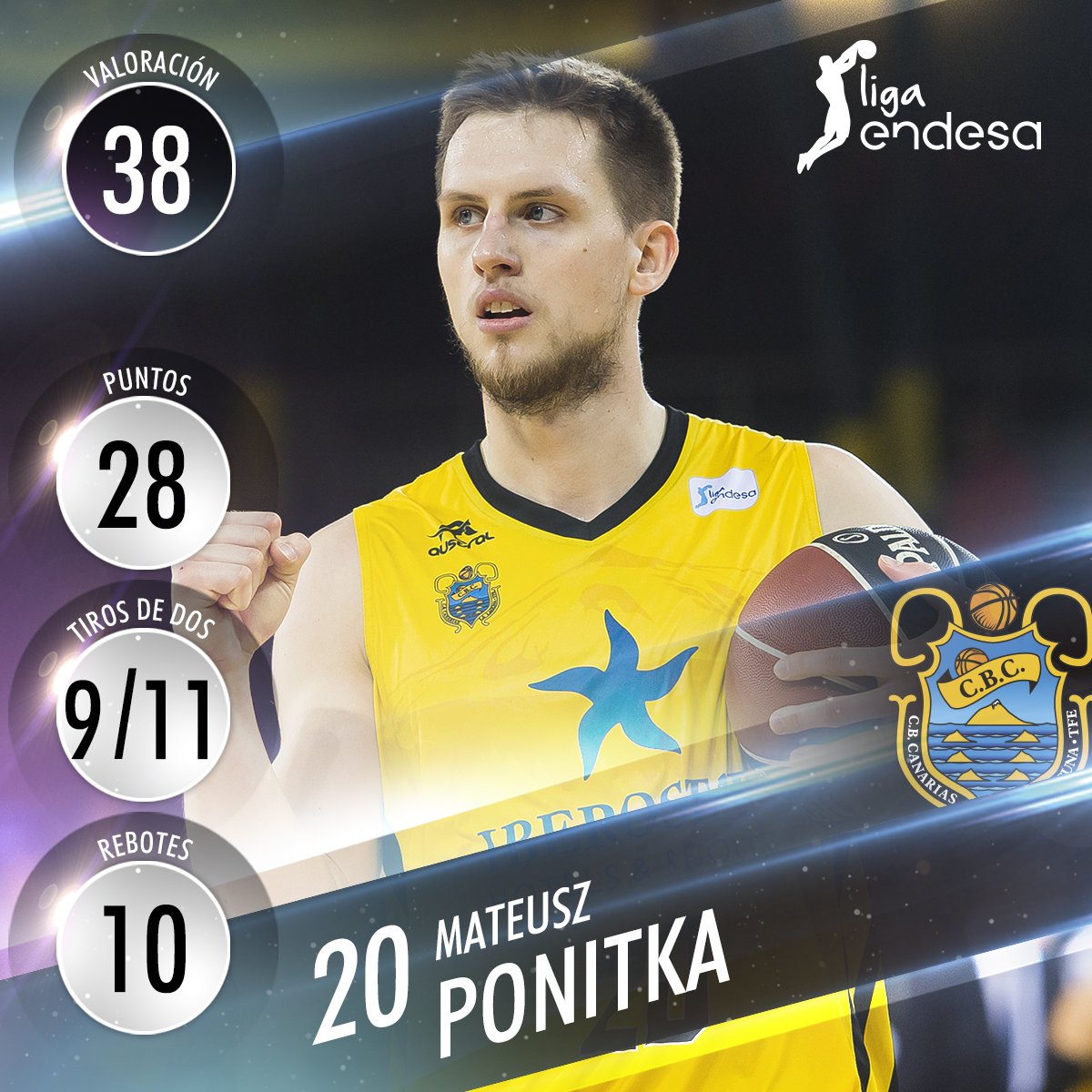 Recuperando 1 balón y provocando en sus rivales 8 faltas personales, completó Mateusz Ponitka una brillante estadística que cerró con los mencionados 38 puntos de valoración. Esta cifra establece su nuevo tope en la competición, al superar los 34 créditos que alcanzó en la Jornada 4 frente al Joventut.