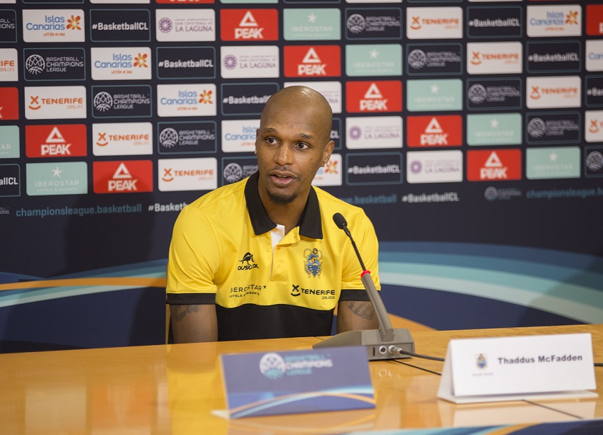 LA LAGUNA – Thad «Jugón» McFadden compareció esta mañana en la habitual rueda de prensa previa a una nueva jornada de baloncesto en el Santiago Martín, esta vez correspondiente a la séptima jornada de la Basketball Champions League (BCL), y que enfrentará al Iberostar Tenerife ante Paok de Salónica.