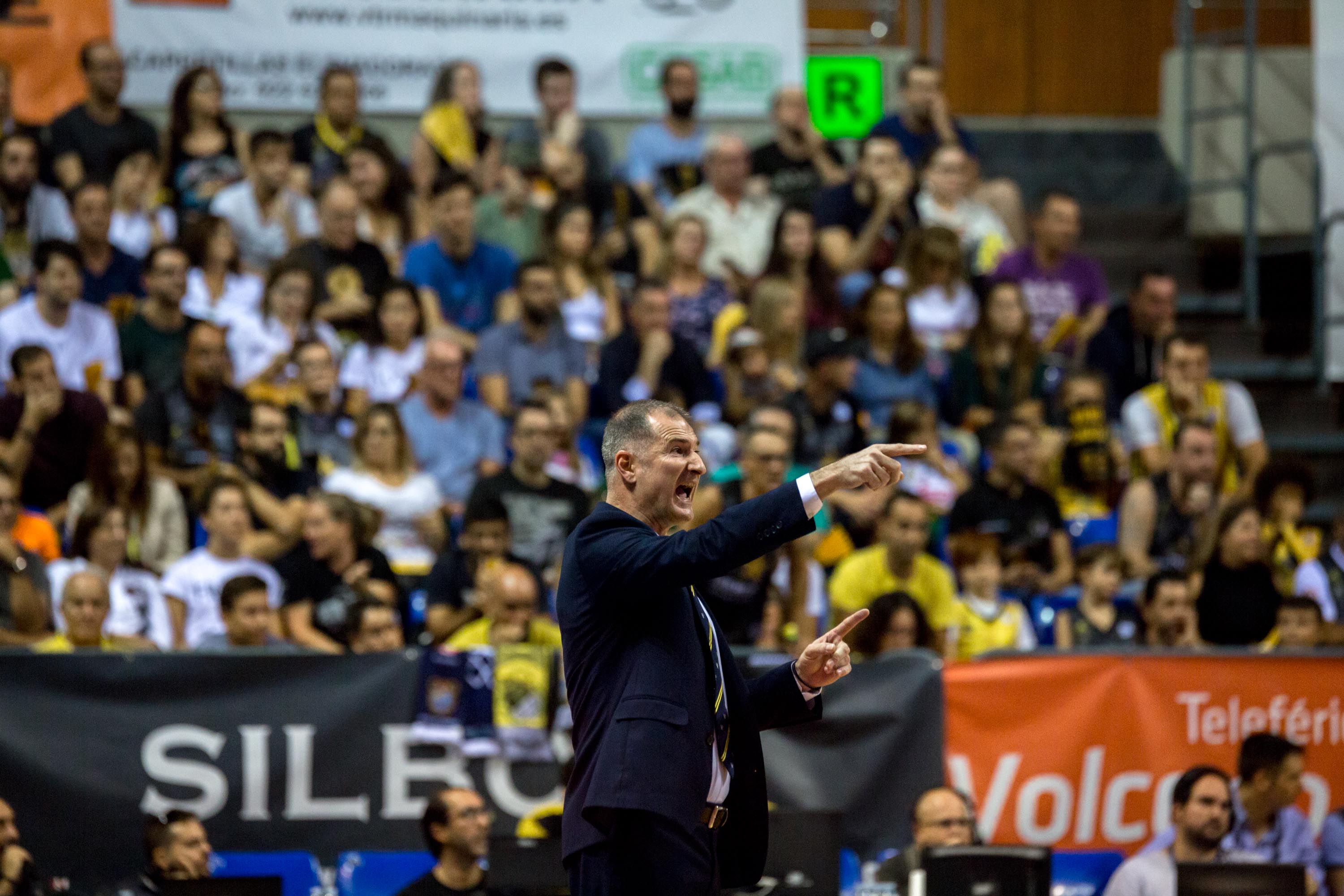 El preparador del Canarias compareció en la sala de prensa del pabellón de deportes de Tenerife Santiago Martín para analizar la tercera derrota, segunda consecutiva, de la temporada en la Liga ACB.