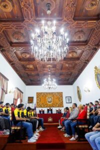 El club, como no podía ser de otra manera, ha realizado al Cristo de La Laguna una ofrenda de flores amarillas. Posteriormente, los técnicos y baloncestistas del Canarias han sido recibidos en el Consistorio de Aguere por representantes del actual equipo de gobierno. El alcalde de la ciudad universitaria, Luis Yeray Gutiérrez, ha presidido el acto junto al presidente del club, Félix Hernández, y ha transmitido su apoyo al equipo en nombre de la Corporación municipal.