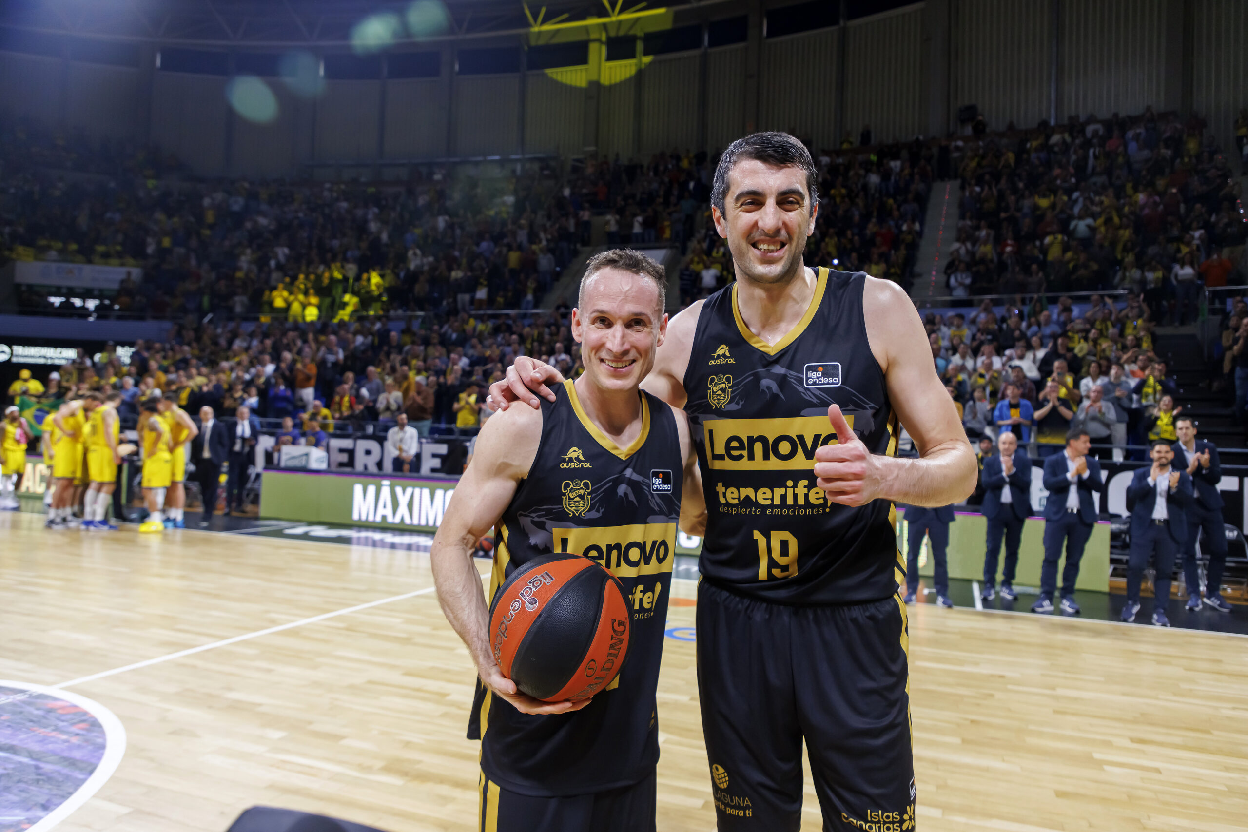 En ese tiempo, llegó a sumar 38 créditos de valoración, superando en uno los 37 logrados el pasado fin de semana y cerrando así su mejor actuación de la temporada… ¡por el momento! Y es que Shermadini no tardó en mostrar su fortaleza física y su intención de ser uno de los protagonistas del Canarias y del derbi isleño. Ganó el salto inicial y se encargó de convertir antes del descanso la canasta que, tras asistencia de Marcelinho Huertas, convertía al brasileño en líder histórico de la competición.