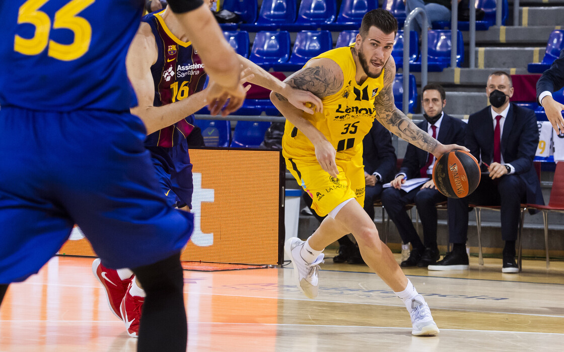 Bolmaro hizo lo propio sobre Bruno Fitipaldo. Frenar el ritmo ofensivo del equipo lagunero era sinónimo de frenar a su dupla de playmakers sudamericanos. Esa defensa catalana en el puesto de 1 dio frutos a los del Palau. Un triple de Hanga daba al Barça la máxima (27-22), con un nuevo triple de Kuric, que parecía arrancar su casillero (30-24).
