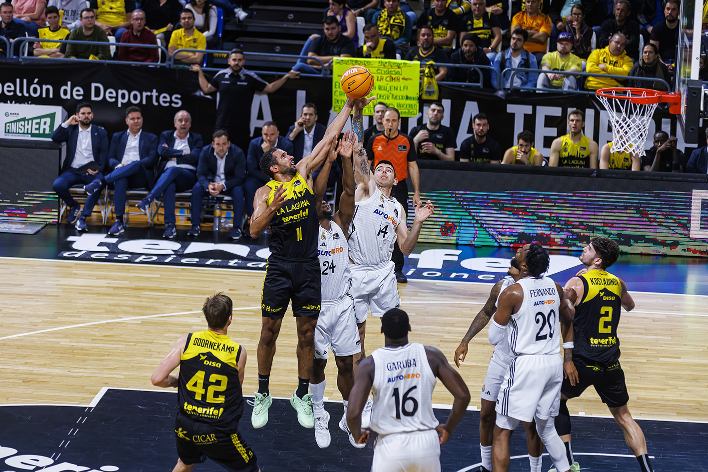 La derrota sufrida este domingo ante el Real Madrid no ha impedido que La Laguna Tenerife celebre una gran noticia: su clasificación matemática para el Playoff de la Liga Endesa. A falta aún de siete jornadas para el cierre de la fase regular, el conjunto aurinegro ha sellado su presencia en las eliminatorias por el título gracias a la combinación de resultados, concretamente la victoria del BAXI Manresa frente al Joventut de Badalona.