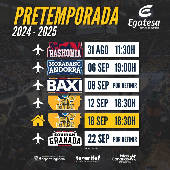 ¡La pretemporada del Canarias ya está aquí! La Laguna Tenerife arranca su puesta a punto disputando seis partidos de preparación antes del debut oficial. Desde el choque ante Baskonia a los dos encuentros tradicionales entre los representantes del baloncesto isleño en la élite del baloncesto en el estado español. ¡No se pierdan nada!