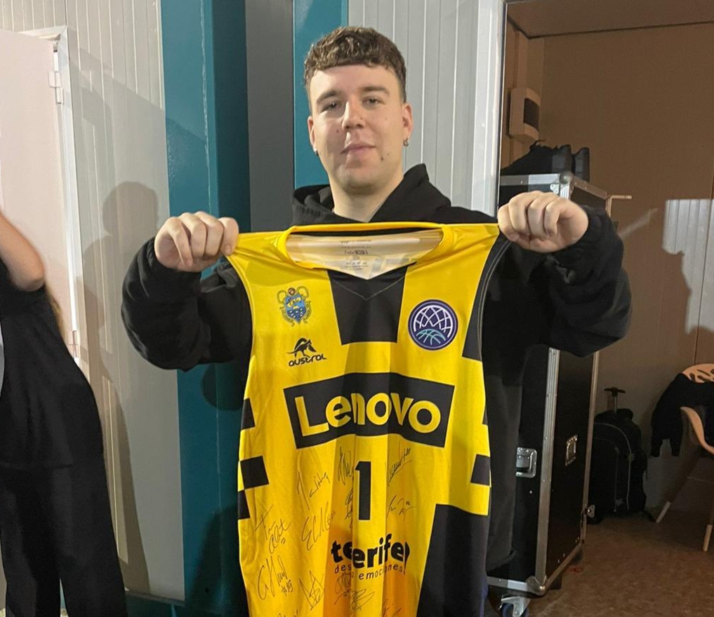 • El cantante canario desató la locura el pasado sábado en Arona, en el final de su gira, y no dudó en posar con la elástica amarilla y negra.