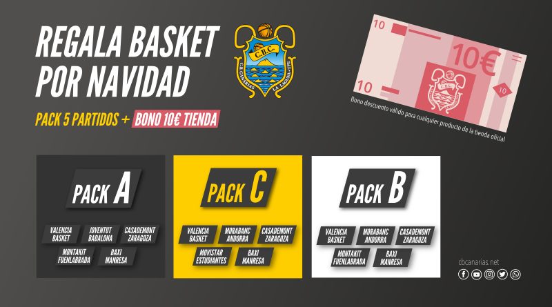 Bajo el lema “Regala Basket por Navidad”, el club canarista ofrece una variada oferta de descuentos para asistir a cinco partidos de la liga doméstica, a través de tres packs diferentes, bautizados con las siglas de la propia competición. Además, la oferta incluye un bono descuento de 10 euros para gastar en la compra de cualquier producto de la tienda oficial del club.