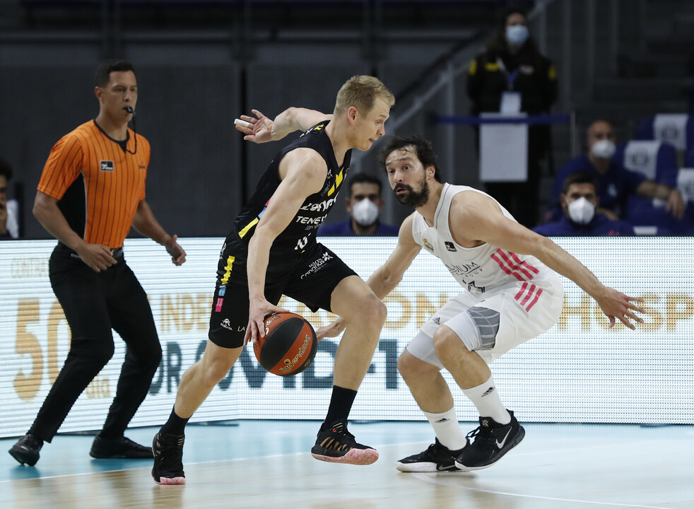 El escolta del Lenovo Tenerife Sasu Salin, compareció ante los medios de comunicación a modo de previa del encuentro que este fin de semana jugarán los laguneros en el Santiago Martín frente al potente Unicaja de Málaga de los ex aurinegros Fotis Katsikaris y Tim Abromaitis.