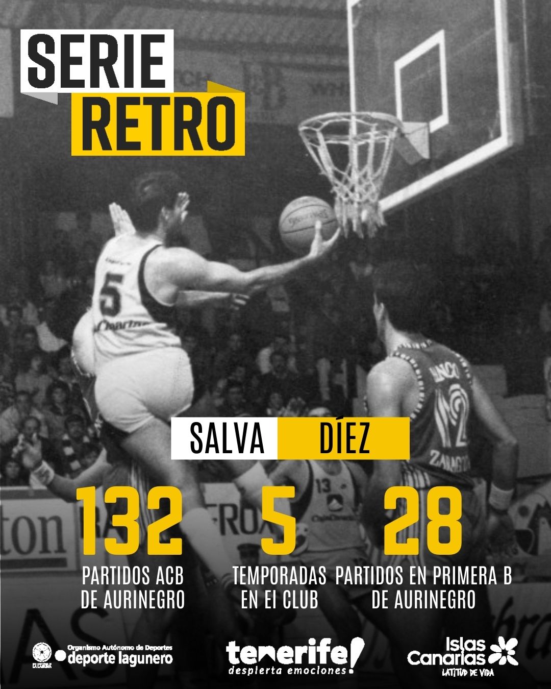 El Club Baloncesto Canarias regresa con su ‘Serie Retro’ después del paréntesis de la Copa del Rey, esta vez poniendo el foco en la figura del base Salva Díez, base del mejor Canarias del siglo XX y sucesor de su ídolo, Carmelo Cabrera.  Incorporado a la disciplina aurinegra en la temporada 1984-85, cuando el equipo jugaba con el nombre comercial de Lucky Canarias y procedente del Tizona de Burgos. El base de Logroño, disputó un total de 160 partidos oficiales con la camiseta amarilla y negra, 132 en la Liga ACB y 28 en la extinta Primera División B.