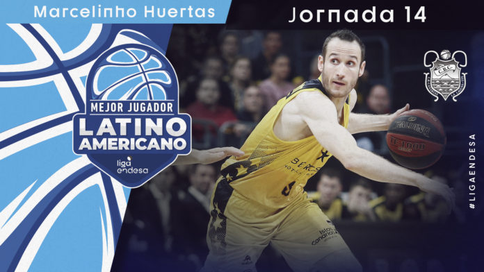 El base brasileño del Canarias Marcelinho ‘Showtime’ Huertas logró este pasado fin de semana su cuarto reconocimiento de la temporada como mejor jugador Latinoamericano de la Liga Endesa, lo que consolida su liderato en la clasificación general de este trofeo que organizan, por segundo año consecutivo, la Agencia EFE y la ACB, en la que juegan un total de 22 jugadores de seis países americanos.