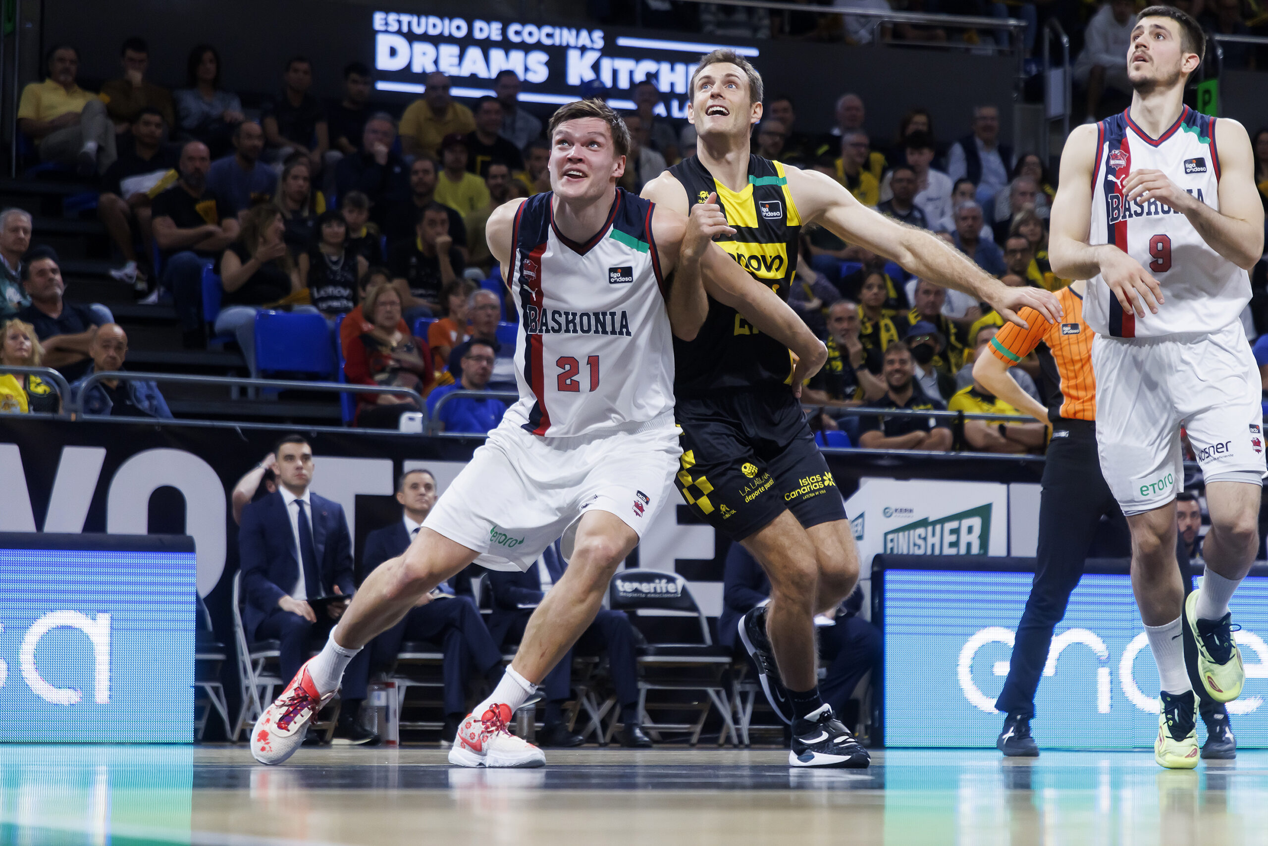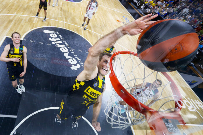 Triunfo del Canarias ante Baskonia por 95-78. Los aurinegros, además de hacerse con el basketaverage y acercar a Marcelinho Huertas al liderato histórico en asistencias que ostenta Pablo Laso, han visto como Tim ‘Superman’ Abromaitis ha conseguido ascender al podio histórico del equipo tinerfeño en el capítulo de rebotes.