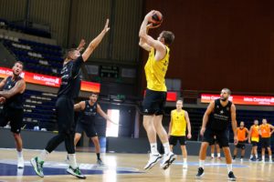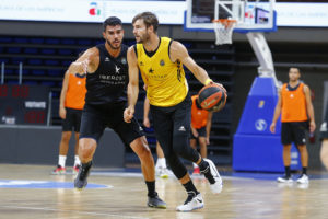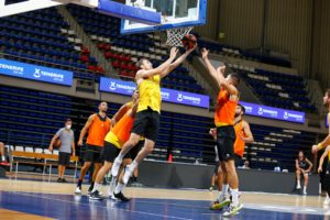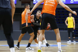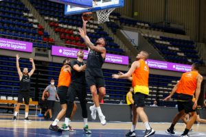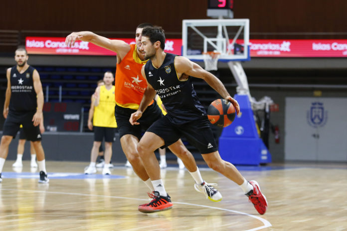Con el coronovirus modificando y condicionando todos los ámbitos de la vida, los aurinegros han realizado en el día de hoy su habitual trabajo tanto en el gimnasio como sobre el parqué del Santiago Martín, entrenamiento este que se ha ido repetidiendo sistemáticamente desde el inicio de la pretemporada aurinegra hace ya catorce días. Como ya les hemos mentado y como si se tratara de unos entrenamientos más, los equipos canarios en la Liga Endesa iniciarán la actividad competitiva a partir de este miércoles con los clásicos ensayos de pretemporada tras las dos primeras semanas de preparación. Estos ‘partidos’ no se diferenciarán mucho de las sesiones realizadas hasta ahora por la ausencia de público, entre otras cosas, a causa de la grave crisis sanitaria y a una indefinición general en relación a los acontecimientos con público en instalaciones cubiertas, dada la situación cambiante de la emergencia sanitaria.