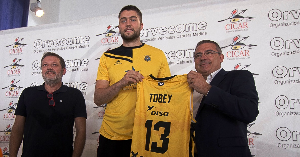 La presentación del jugador contó con la presencia del presidente de la entidad lagunera, Félix Hernández, así como con Javier Martín, director de Marketing de la empresa patrocinadora. Tobey se mostró feliz y “muy contento” por lo vivido en sus primeras semanas en Tenerife. “Todo está yendo genial. Me he encontrado muy bien durante estos primeros entrenamientos y estoy encantado con mis compañeros de equipo”, aseveró.