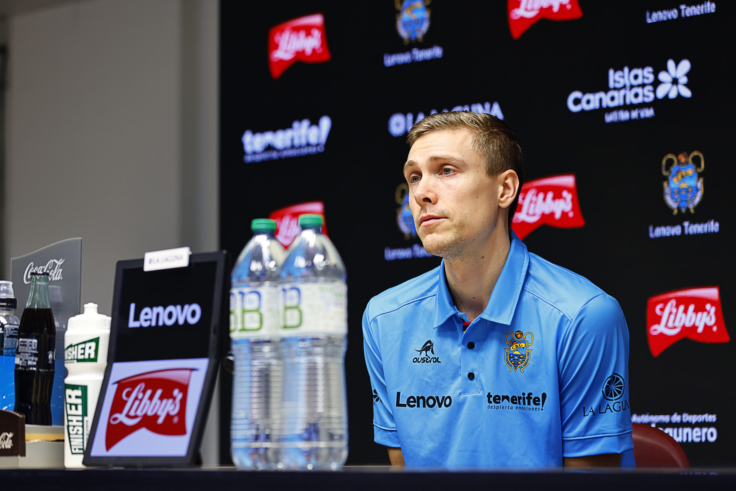 Turno para Tobias en la nueva sala de prensa del Santiago Martín. El jugador canarista, internacional sueco, compareció ante los medios para analizar desde su punto de vista el partido que este próximo sábado enfrentará a fuenlabreños y laguneros en el pabellón Fernando Martín en la localidad ubicada al sur de Madrid (17.00 hora canaria, SuperBasket Canarias Radio en directo).
