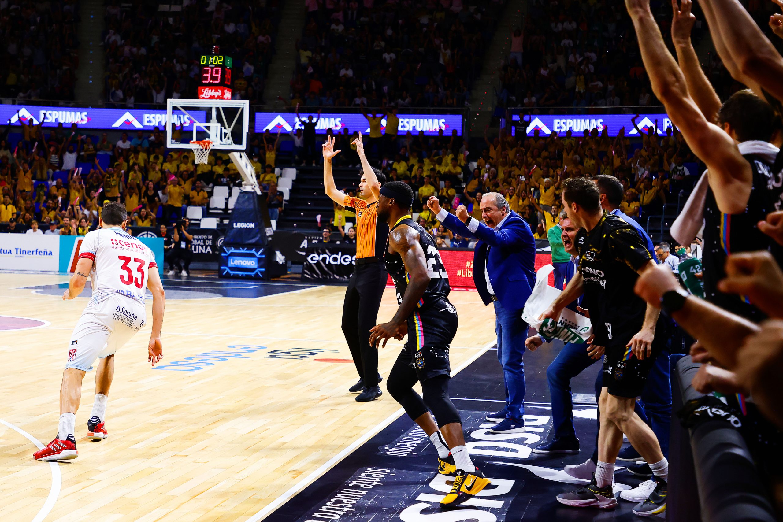 Vidorreta celebra un acierto triple de los suyos/ACB Photo-E. Cobos