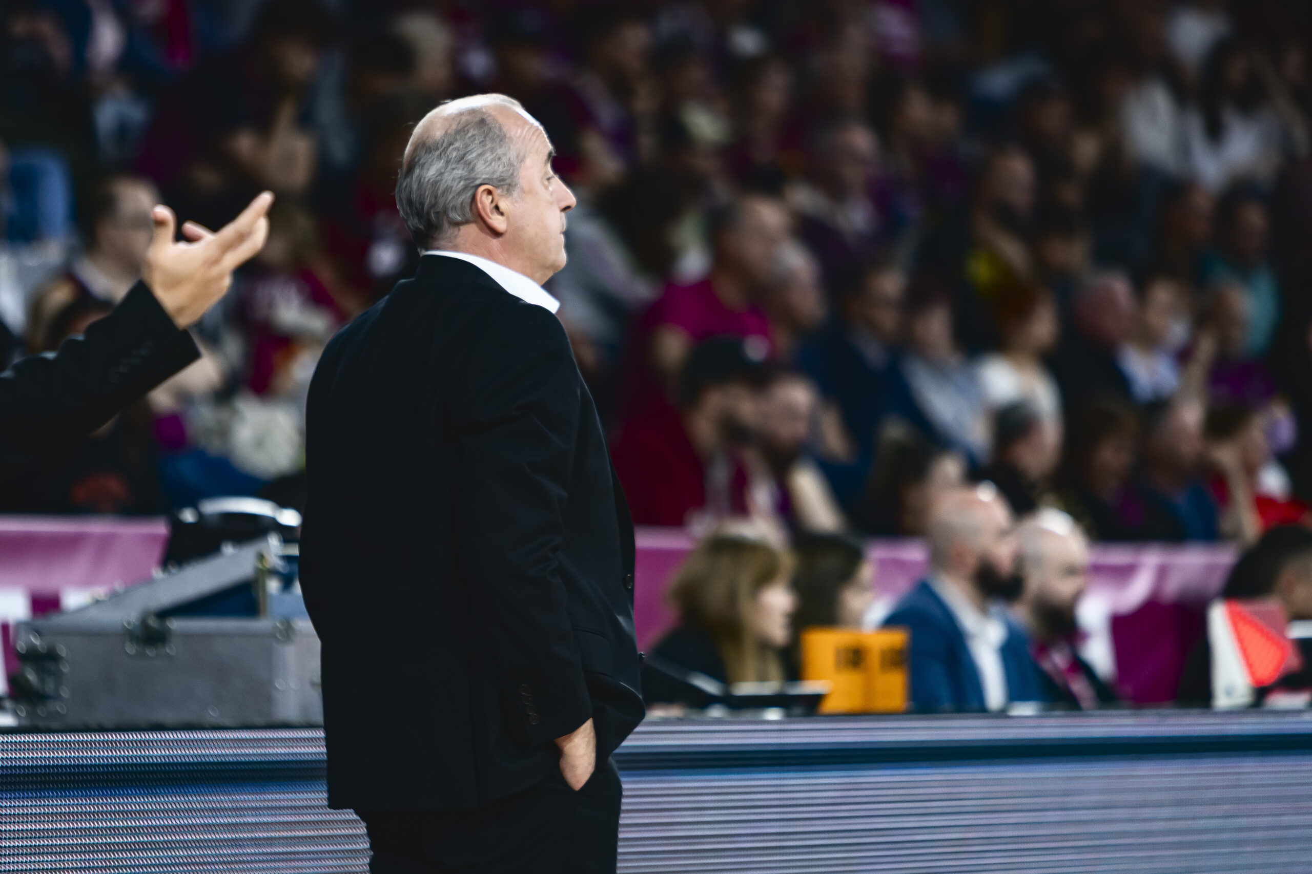 «Hemos sido condicionados un poco al final, también ellos, porque han gastado los tiempos antes. Hemos reaccionado con un 11-0 que nos ha dado una ventaja importante que hemos podido extender y creo que en el final nos ha faltado un poco de piernas. Estamos involucrados en un play-off muy exigente con un gran equipo como es el Galatasaray y hemos fallado tiros que normalmente anotamos cómodos: el corte por el medio fondo de Rokas, la bandeja de Marce, el tiro corto de Marce, el triple de Jaime, la situación en pintura de Fran. Las hemos fallado todas y ellos, en cambio, como son un equipo de arreones, estando doce abajo y con balón nosotros para ponernos catorce, han sido capaces de volver e incluso han tenido el triple para forzar la prórroga. No ha entrado, así que estamos muy contentos por la victoria. Sumamos 16, le llevamos al Girona dos, es decir, cuatro triunfos y el basket average. Eso hace que, con lo que queda, el objetivo de luchar por estar en Europa esté prácticamente conseguido y ahora queda certificarlo y, además, estar en el play-off. Va a ser duro porque nuestros rivales son Bilbao Basket, uno de los mejores equipos del año, y Unicaja, que ya está clasificado para la Final Four. Pero muy contentos por esta victoria y por estos 16 triunfos que nos permiten, en los últimos diez partidos de Liga Endesa, haber ganado siete, una cifra muy importante para el esfuerzo y el trabajo del equipo toda la temporada».