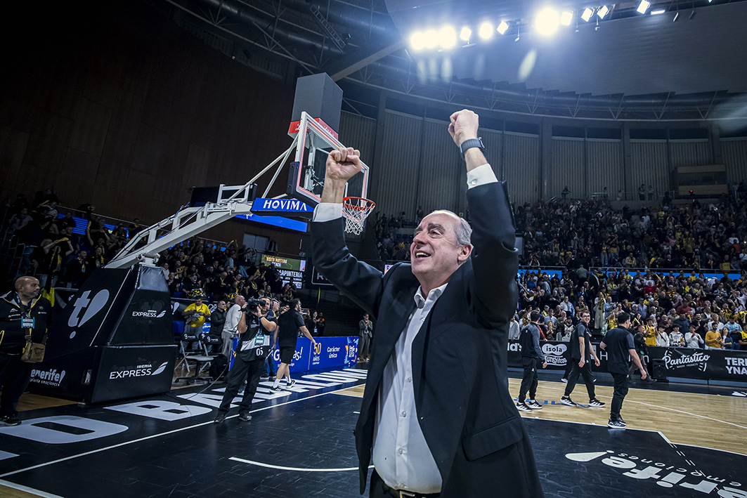 • El entrenador del Canarias se mostró especialmente satisfecho tras la contundente victoria de La Laguna Tenerife ante el Galatasaray en el tercer partido de cuartos de final de la BCL, un triunfo que selló el pase a la Final Four con una actuación que calificó de “casi perfecta” tanto en defensa como en ataque.