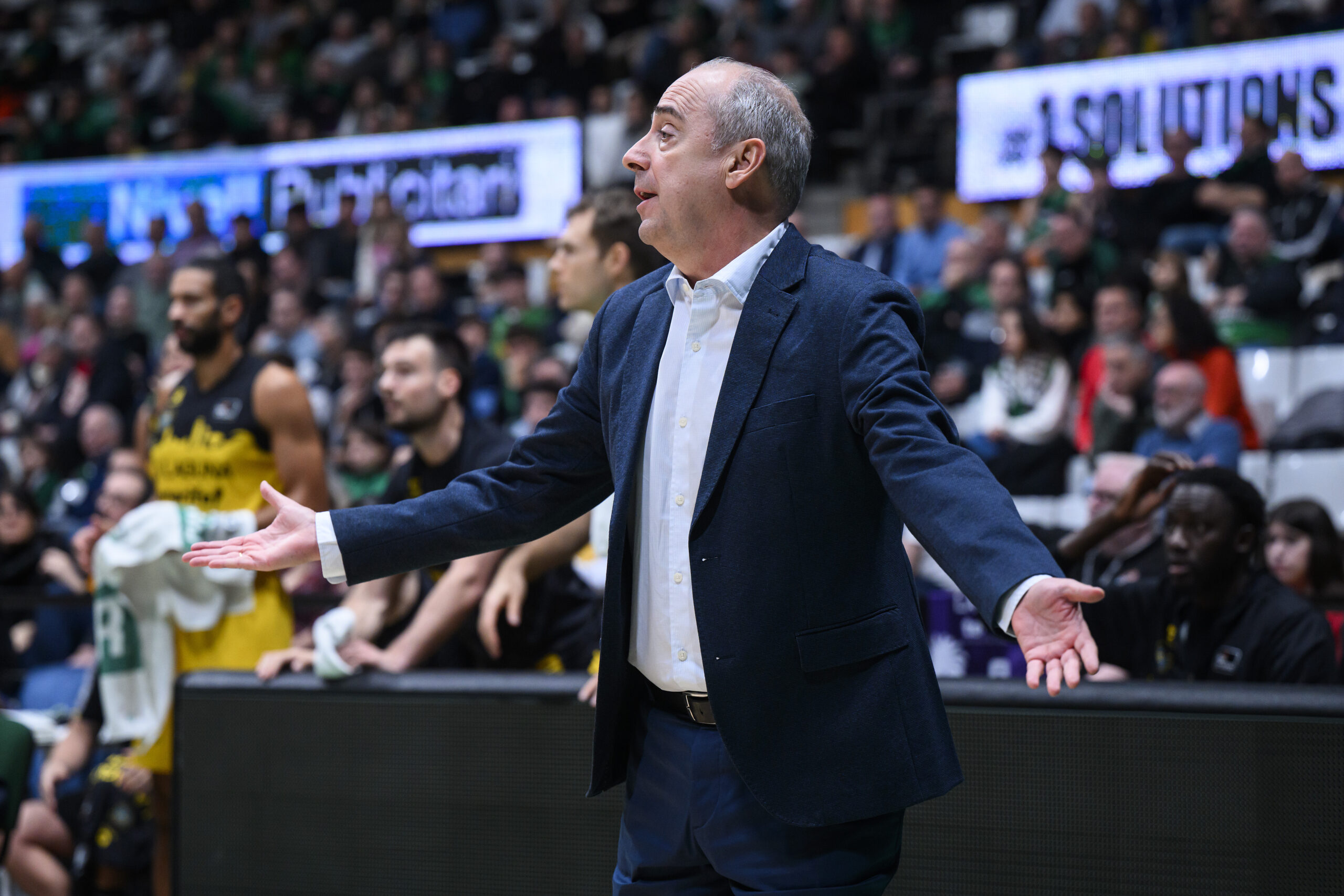 “Hemos empezado muy bien a nivel defensivo, siguiendo el plan previsto y trabajando con mucha intensidad sobre las líneas de pase y robando balones, estando bien en el rebote. Teníamos el control aunque sin brillar en ataque. Perdimos un poco de confianza aunque la defensa del segundo cuarto fue buena. Nos apretaron, cometimos un par de errores y nos fuimos uno abajo al descanso. En el tercer cuarto empezamos mal, ellos controlaban desde su defensa el juego y nos hicieron un 7-21 parcial total. Cuando peor estaban las cosas el público apretó y el equipo se vino arriba, con una gran aportación de Scrubb al que necesitábamos. A partir de ahí hicimos un parcial 37-15 en doce minutos que dejó casi sentenciado el partido”.