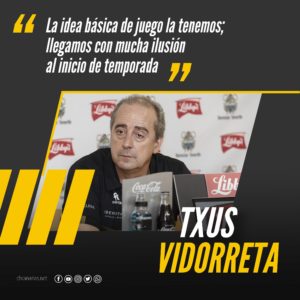 Txus Vidorreta compareció este mediodía en la sala de prensa del Pabellón de Deportes de Tenerife Santiago Martín. Finalizada la pretemporada, que en lo deportivo se saldó con las victorias ante Montakit Fuenlabrada, en dos ocasiones, y ante Baxi Manresa, siendo superados dos veces por el Kirolbet Baskonia y una por el Casademont Zaragoza.