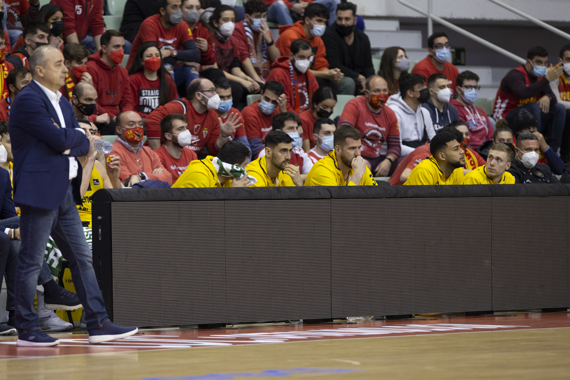 «En primer lugar felicitar a UCAM Murcia por su clasificación para la Copa del Rey, totalmente merecida, no solo por el partido de hoy sino por su fantástica primera vuelta. En este partido hemos puesto todo de nuestra parte para ponérselo difícil pero han sido capaces de sacarlo adelante. Nos ha costado un poco iniciar el partido, algo lógico ya que venimos de estar más de un mes sin jugar partidos de Liga Endesa, aunque hemos tenido tres de Champions, pero es una competición muy diferente, que además nos ha exigido un esfuerzo enorme. A pesar de ese inicio el equipo ha seguido trabajando, mejorando, creyendo y, bueno, hemos llegado incluso a tener una última posesión para empatar el partido si Gio hubiera intentado el tiro, incluso una penúltima en la que podíamos habernos colocado por delante. Ante esto tengo que felicitar a mis jugadores por el gran esfuerzo», puntualizó el entrenador jefe aurinegro.