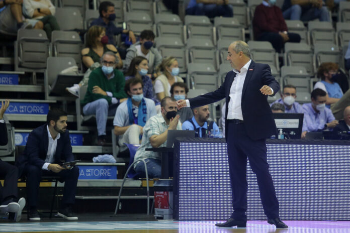 El entrenador del Lenovo Tenerife, equipo profesional del Club Baloncesto Canarias, analizó el difícil compromiso que tiene su equipo este domingo en Madrid ante el actual campeón de la SuperCopa 2021, Real Madrid. El inquilino del banquillo aurinegro no dudó en afirmar que «para ganar a equipos de Euroliga hay que hacerlo todo bien».