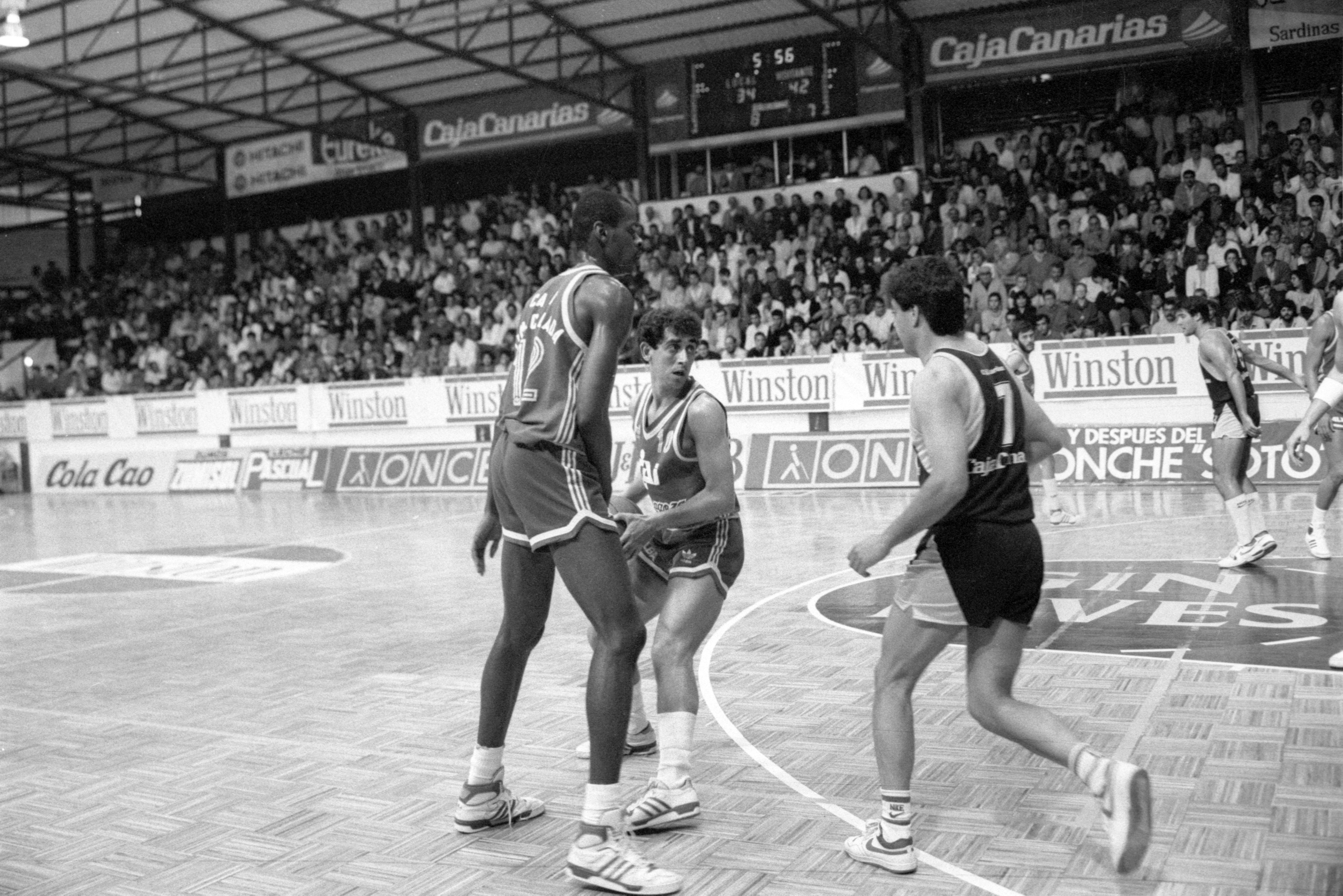 • Las fotos que les mostramos se hicieron el 23 abril de 1988 en el pabellón Juan Ríos Tejera de La Laguna, día en el que Carmelo Cabrera ‘El Globetrotter Blanco’ se retiró como baloncestista en activo.