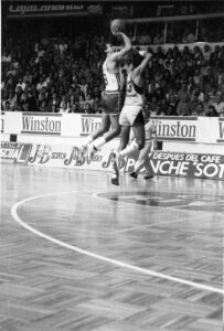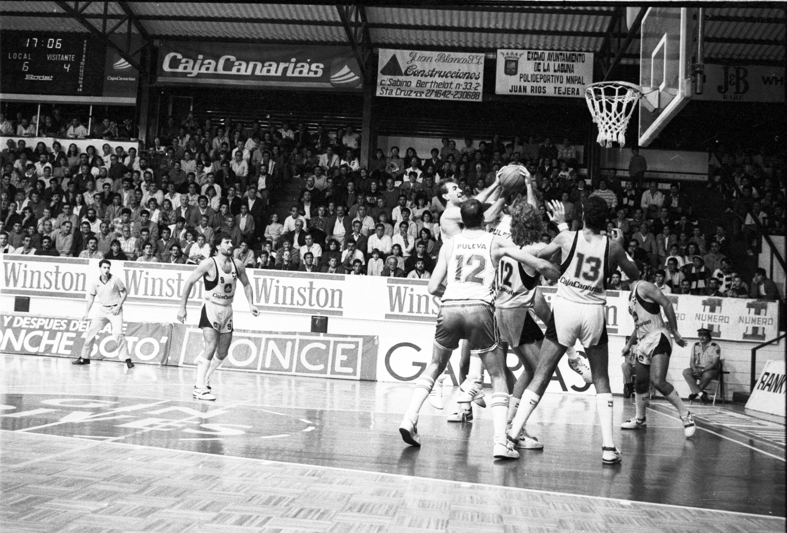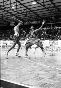 Las fotos rescatadas de nuestro archivo histórico que les mostramos en esta entrega, fueron hechas en el año 1988 en el pabellón Juan Ríos Tejera de La Laguna y corresponden al partido de la Fase Regular, la Liga ACB se disputaba en dos grupos denominados A-1 y A-2, entre el Cajacanarias y el Puleva Granada, choque en el que perdieron los laguneros por un ajustado 81-83. En ese partido defendieron la elástica aurinegra jugadores de la talla de Germán González, Salva Díez, José Carlos Cabrera, Manolo de las Casas, Dan Bingenheimer, Kurt Nimphius, Matías Marrero o Antonio Pérez-Campoamor. Les mostramos una selección de esas imágenes nunca antes digitalizadas.