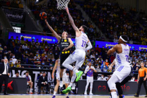 Pero los aurinegros seguían a lo suyo intentando solucionar algunos ajustes defensivos. Un parcial de 6-0 (39-43, minuto 29) volvió a meter de lleno a los de amarillo y negro en el partido, que lograron llegar al término del tercer acto con un 41-43. Y ahí el Canarias sacó todas sus armas, en un último cuarto de superioridad escandalosa. Sasu Salin, con un triple, logró poner a su equipo por delante después de muchos minutos (46-45), respondió Sergio Llull (46-48, minuto 32), pero fue en el minuto 34 cuando el partido dio un cambio total. El quinteto de Aguere mantuvo su excelente nivel defensivo, pero ahora empezaban a estar acertados delante. Sastre puso el 52-50, Fitipaldo, que además exhibió una dirección de juego magistral, el 54-50.