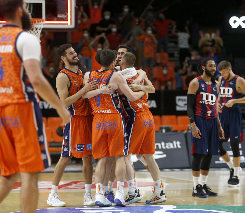 Incidencias: primer partido de los cuartos de final de la Liga Endesa disputado en un pabellón de la Fuente de San Luis con un aforo reducido a 1.500 espectadores por las restricciones por el COVID 19 que se completó.