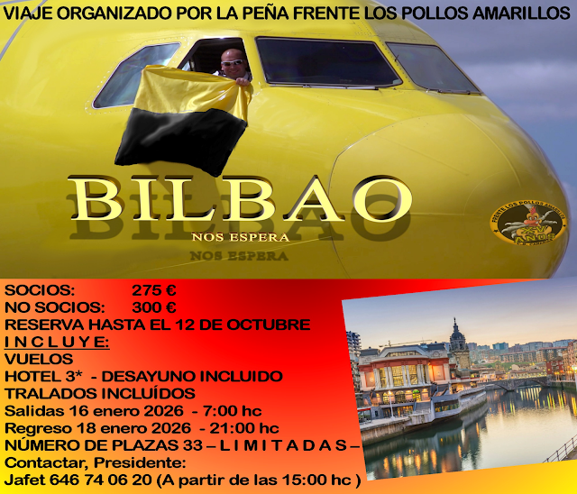 - Los Pollos Amarillos organizan un viaje para acompañar al Canarias en su visita al Surne Bilbao Basket, el 17 de enero de 2026, con vuelos, hotel y traslados incluidos.