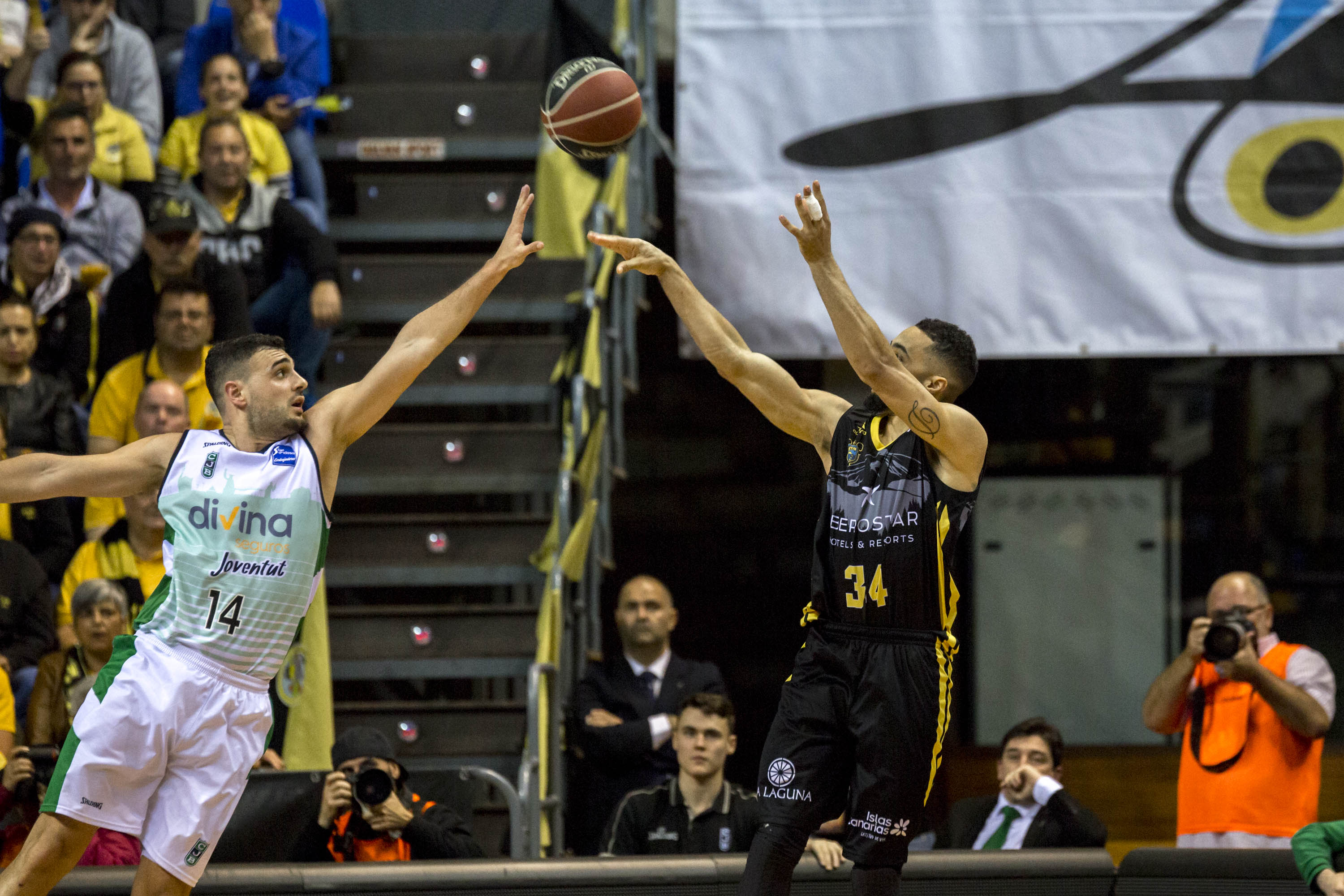 El equipo lagunero, a punto de regalar la victoria en el último minuto del partido, sigue vivo en su objetivo de alcanzar el Playoff por el título tras vencer por 77-75 al Joventut.